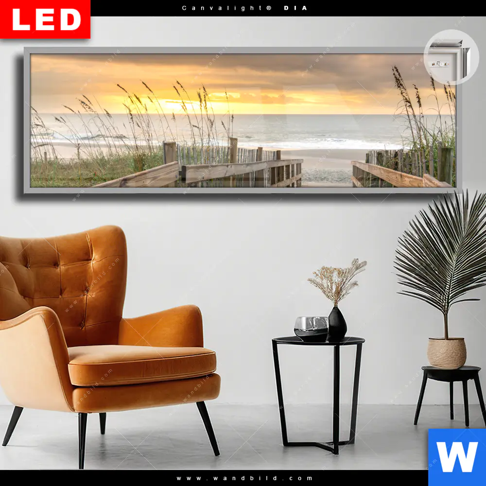 Canvalight® DIA Leuchtbild | Sonnenuntergang am Strandweg | Panorama