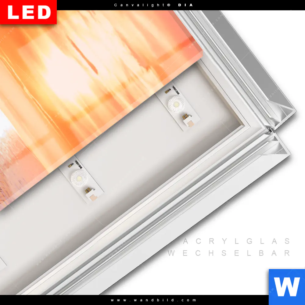 LED-Glasbild mit austauschbarem Acrylglas-Druck (Wechselbild)