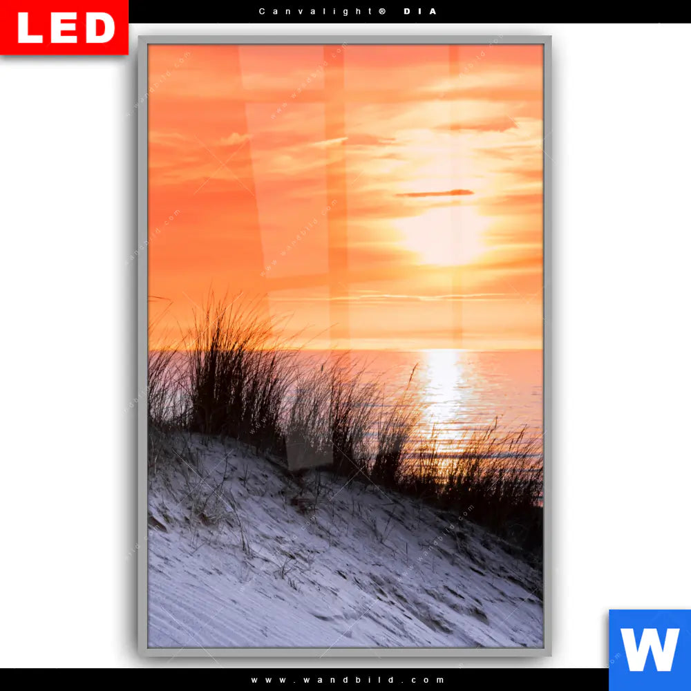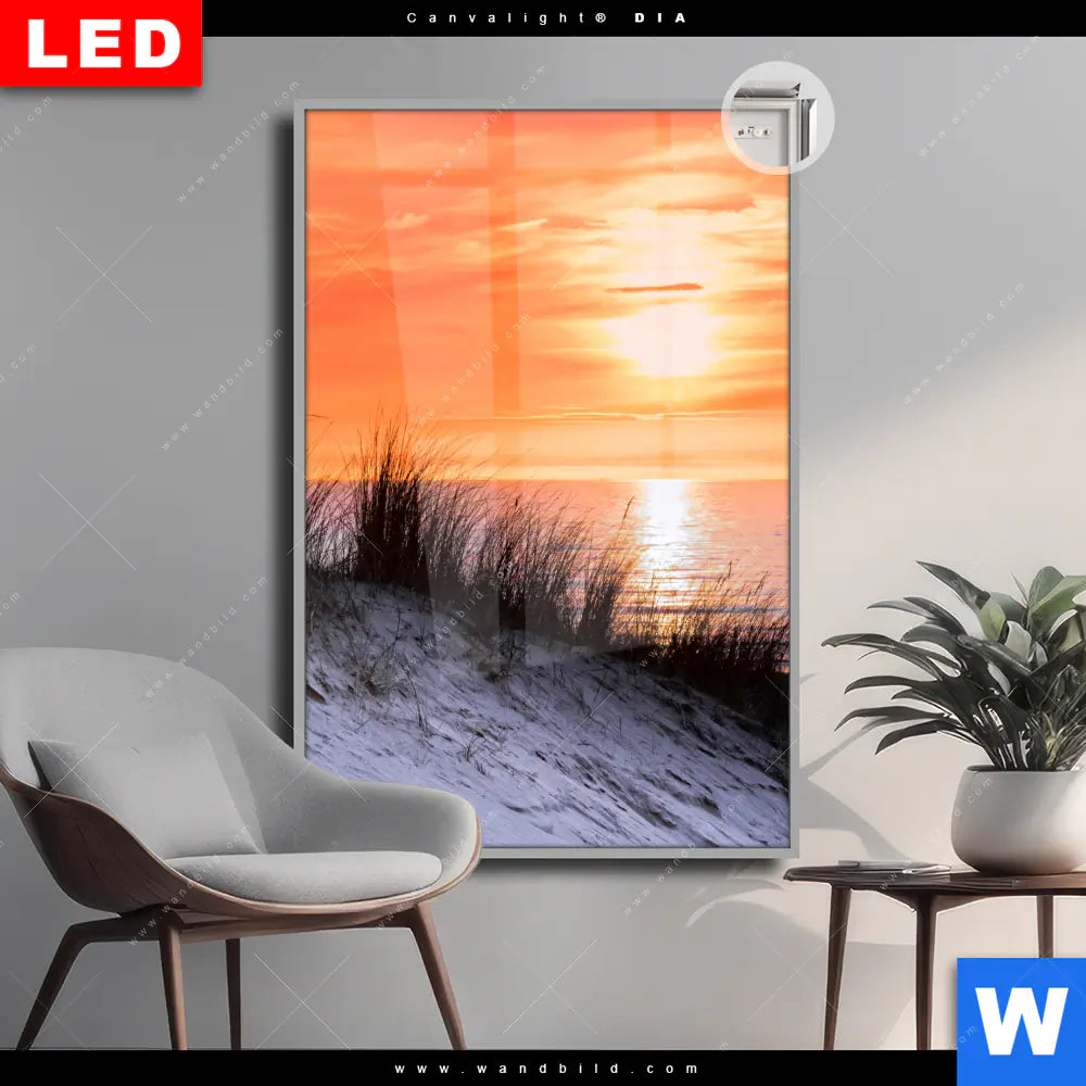 Canvalight® DIA Leuchtbild | Sonnenuntergang mit Düne und Meer | Hochformat
