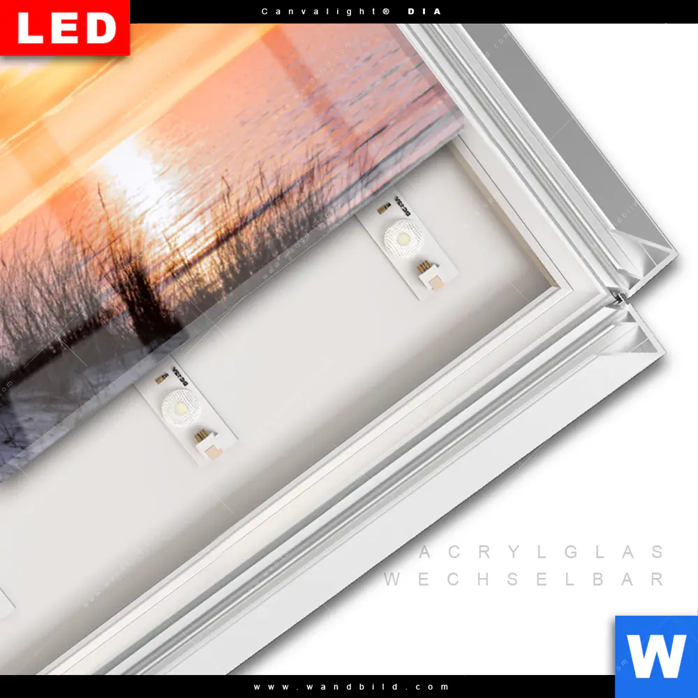 LED-Glasbild mit austauschbarem Acrylglas-Druck (Wechselbild)