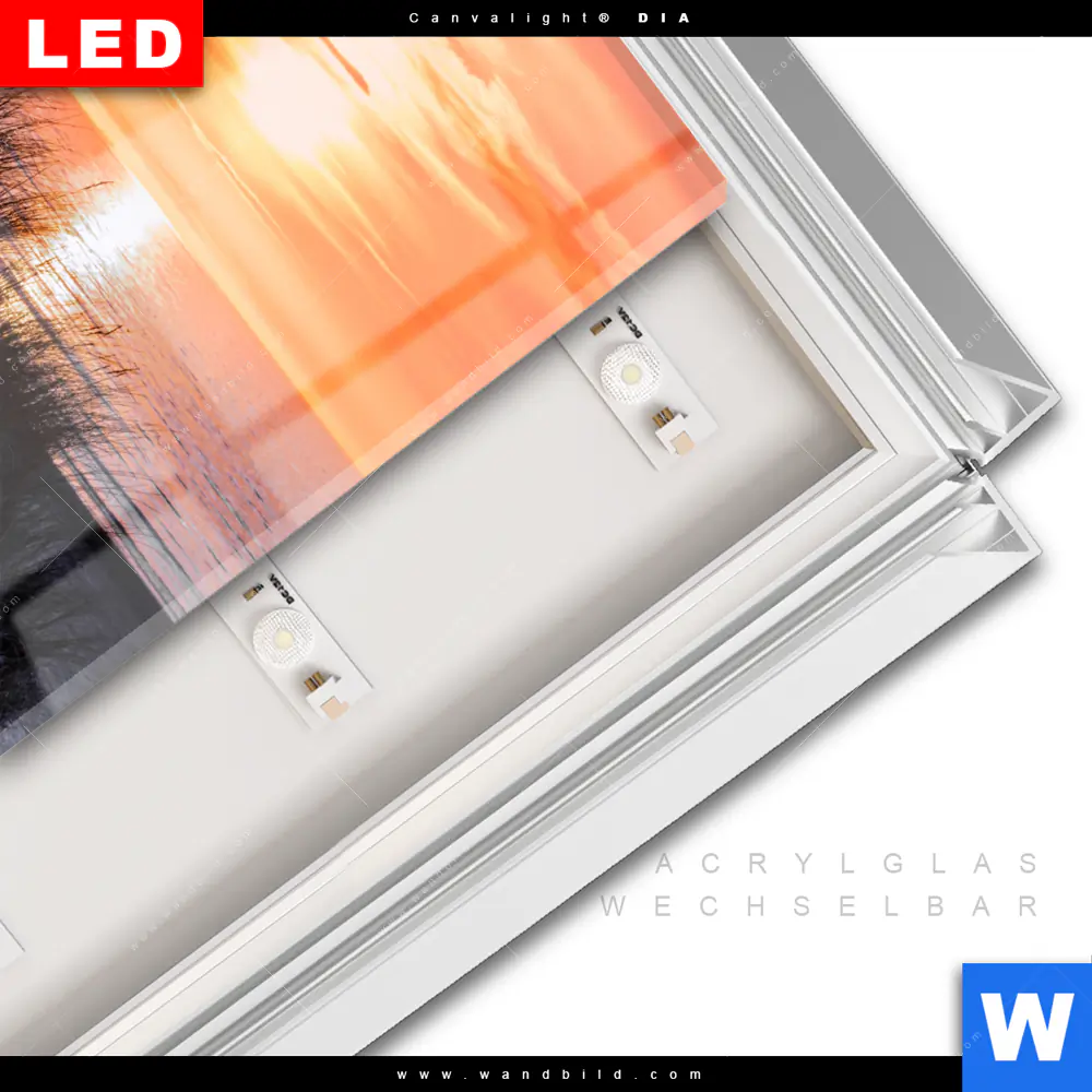 LED-Glasbild mit austauschbarem Acrylglas-Druck (Wechselbild)