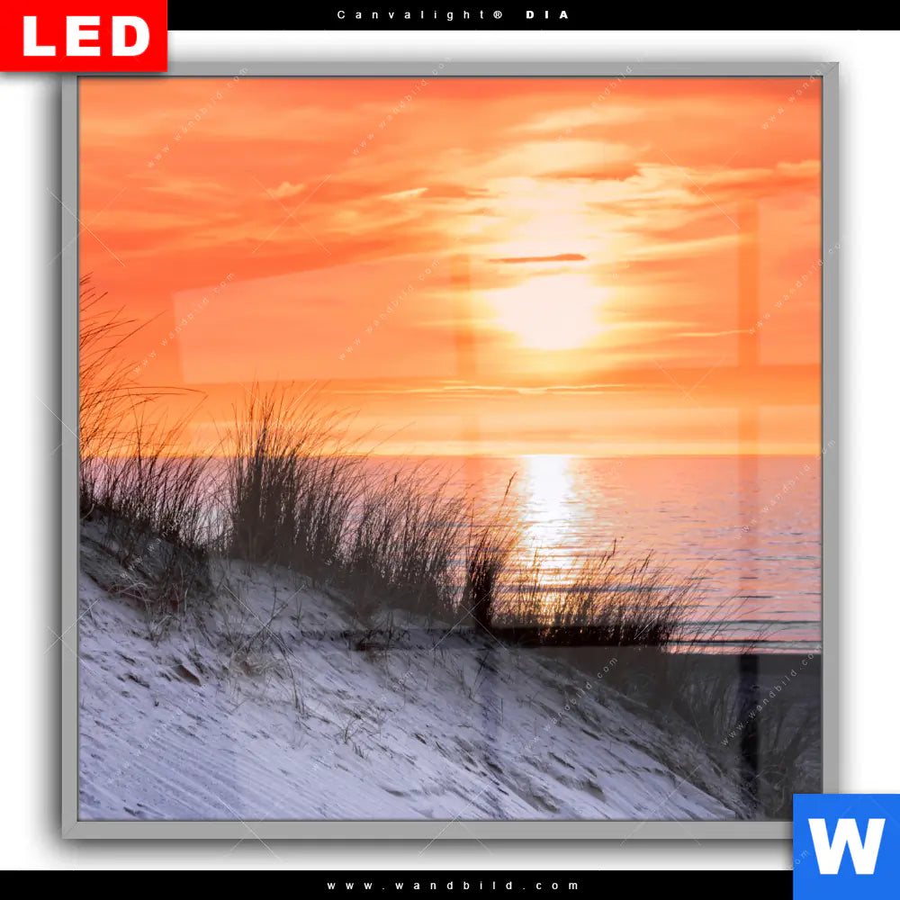 Canvalight® DIA Leuchtbild | Sonnenuntergang mit Düne und Meer | Quadrat