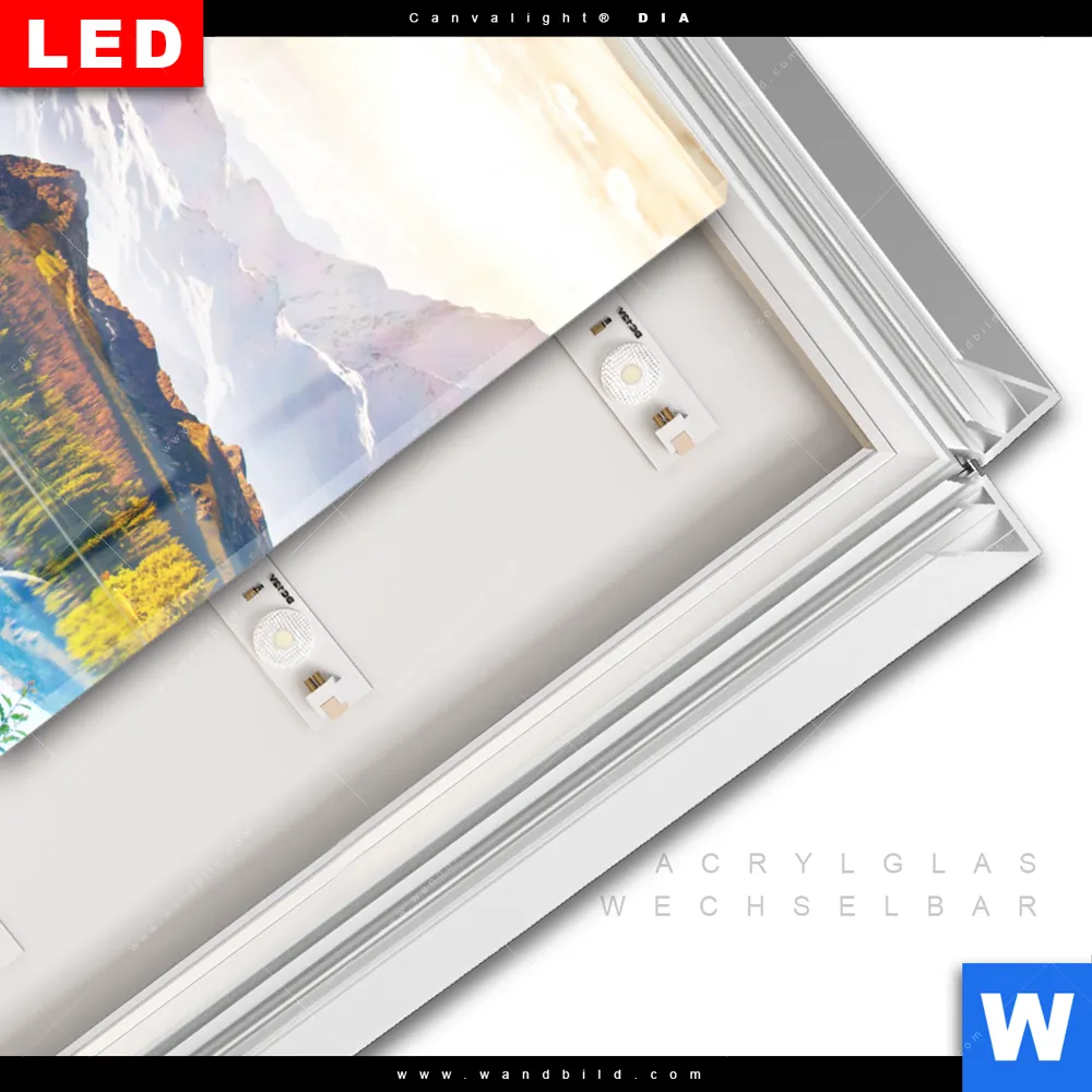LED-Glasbild mit austauschbarem Acrylglas-Druck (Wechselbild)