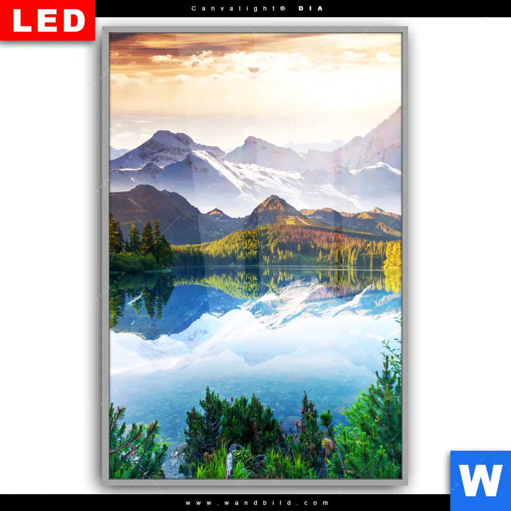 Canvalight® DIA Leuchtbild | Sonniger Tag am Bergsee | Hochformat