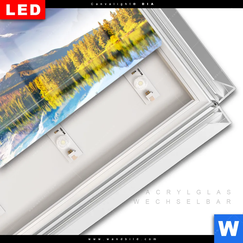 LED-Glasbild mit austauschbarem Acrylglas-Druck (Wechselbild)