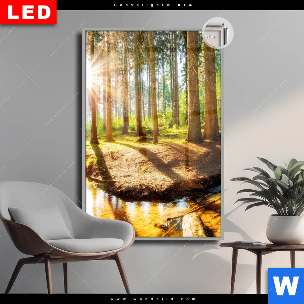 Canvalight® DIA Leuchtbild | Sonniger Wald | Hochformat
