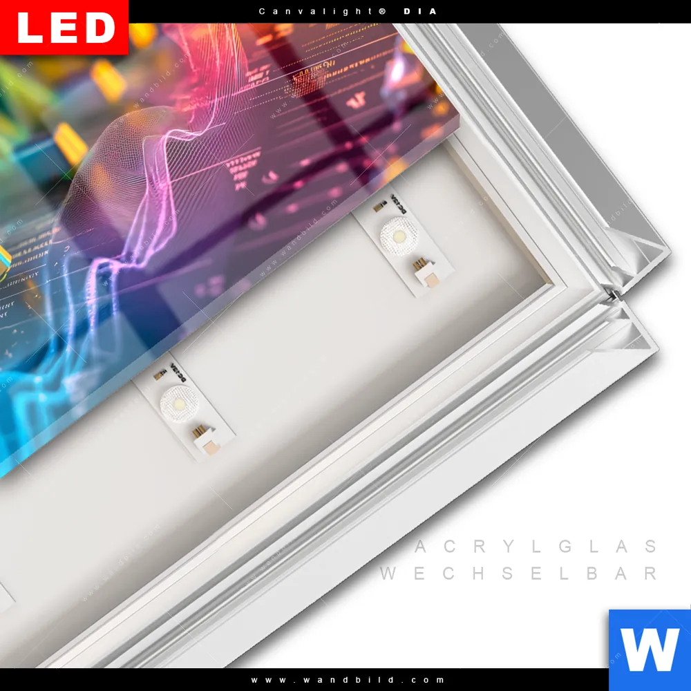 LED-Glasbild mit austauschbarem Acrylglas-Druck (Wechselbild)