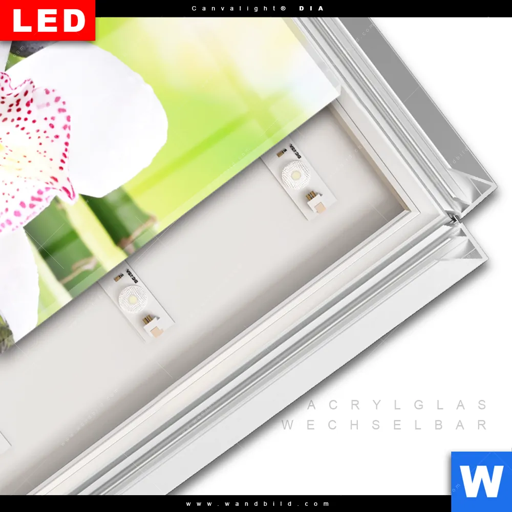 LED-Glasbild mit austauschbarem Acrylglas-Druck (Wechselbild)