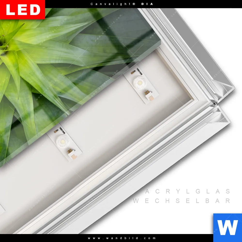 LED-Glasbild mit austauschbarem Acrylglas-Druck (Wechselbild)