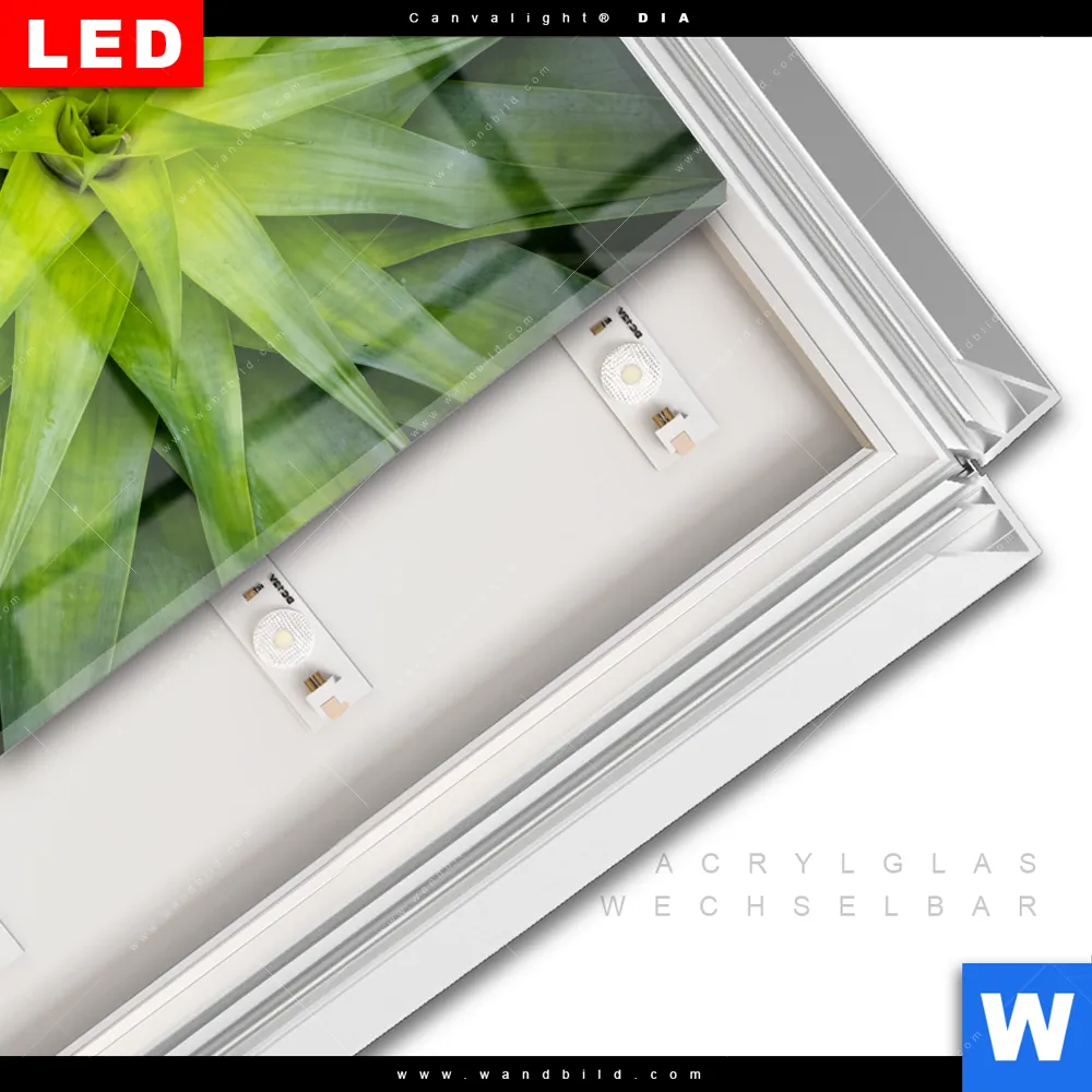 LED-Glasbild mit austauschbarem Acrylglas-Druck (Wechselbild)