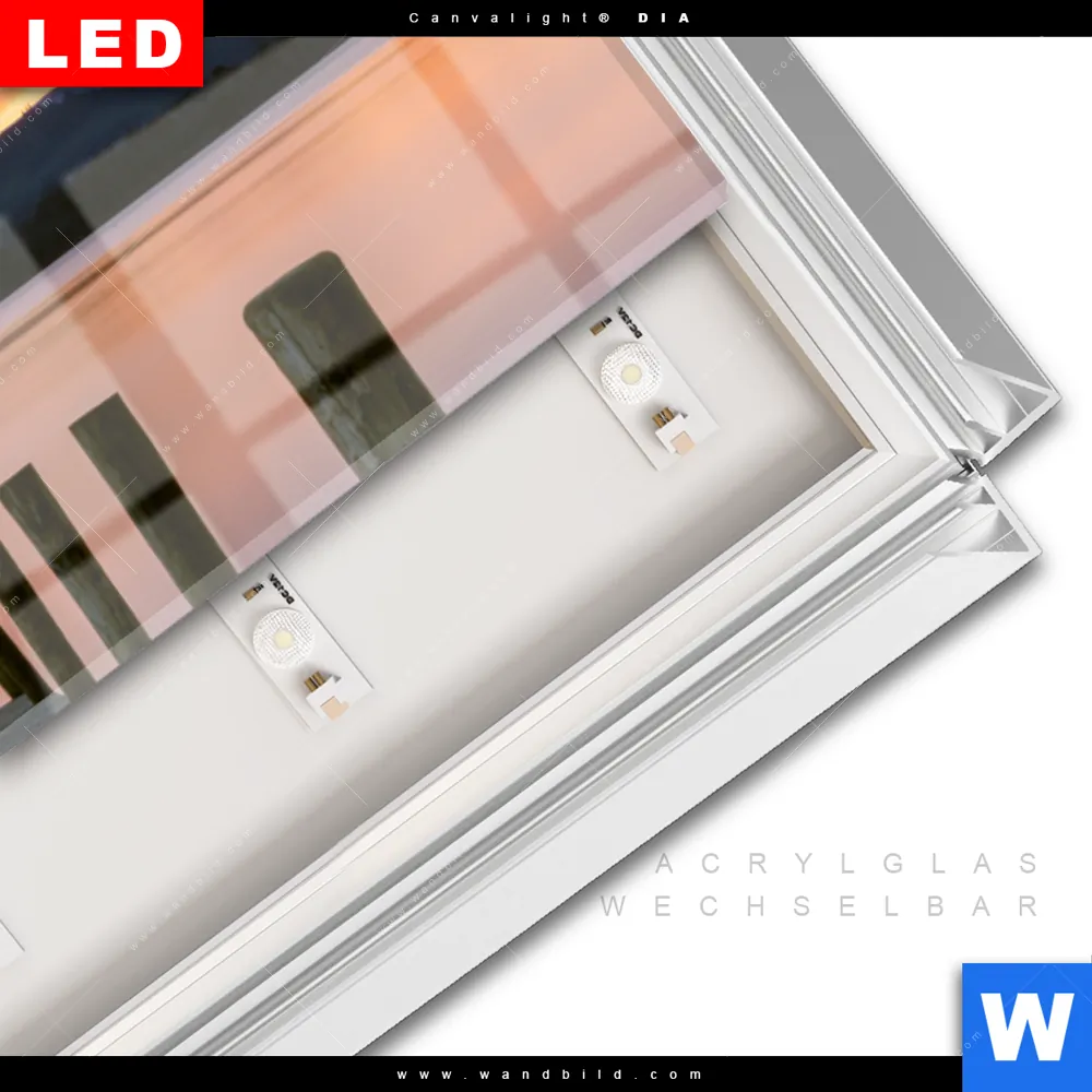 LED-Glasbild mit austauschbarem Acrylglas-Druck (Wechselbild)