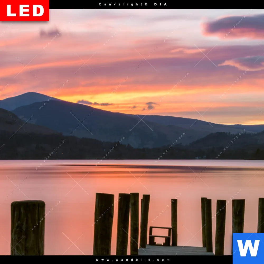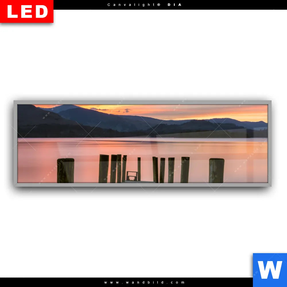 Canvalight® DIA Leuchtbild | Steg in den Sonnenuntergang | Panorama