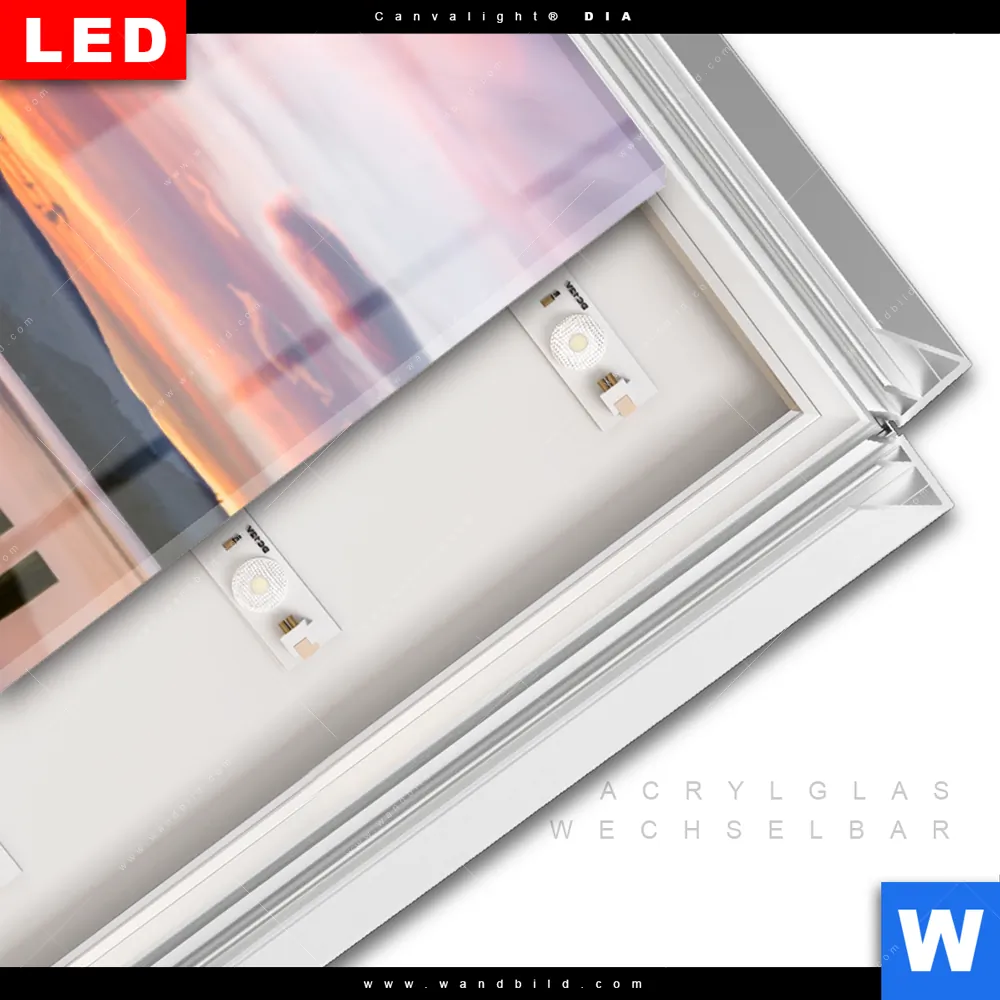 LED-Glasbild mit austauschbarem Acrylglas-Druck (Wechselbild)