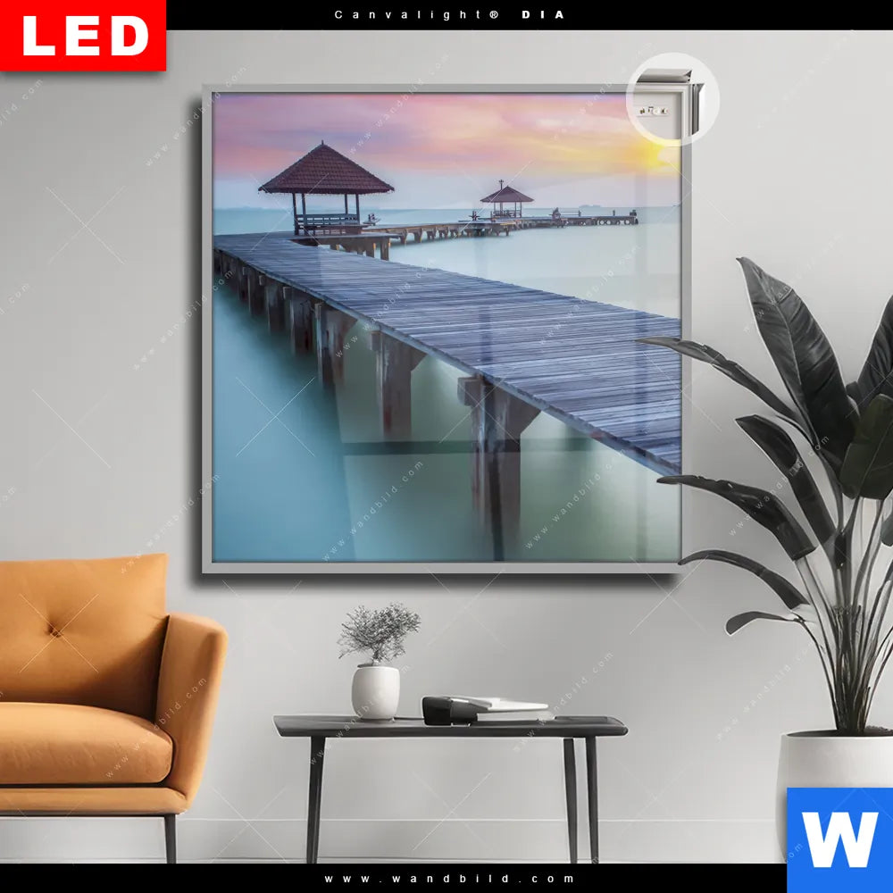Canvalight® DIA Leuchtbild | Steg ins Meer | Quadrat