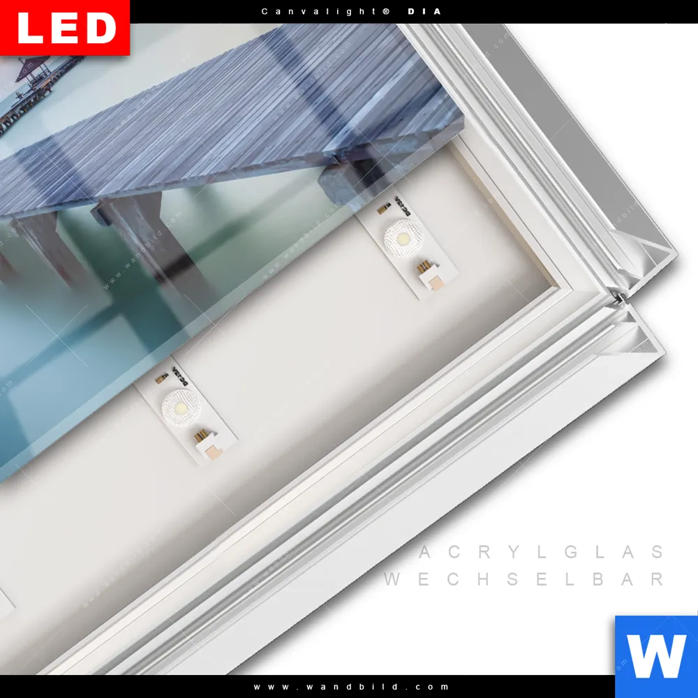 LED-Glasbild mit austauschbarem Acrylglas-Druck (Wechselbild)