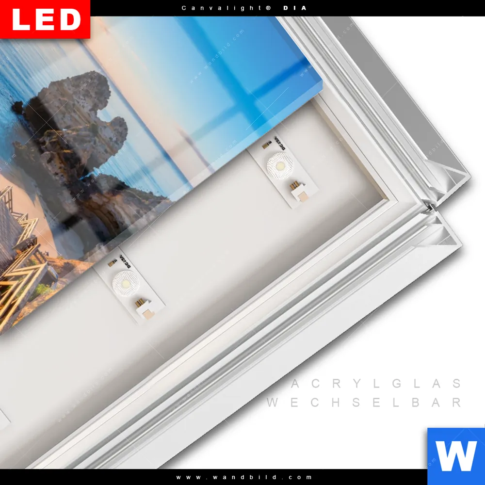 LED-Glasbild mit austauschbarem Acrylglas-Druck (Wechselbild)