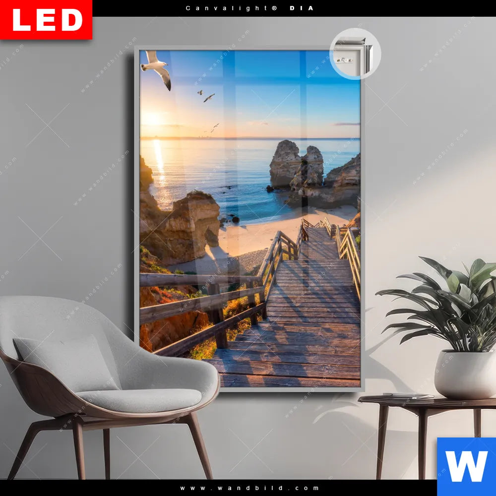Canvalight® DIA Leuchtbild | Steg zum Meer | Hochformat