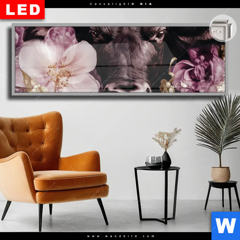 Canvalight® DIA Leuchtbild | Stier mit Blumen | Panorama