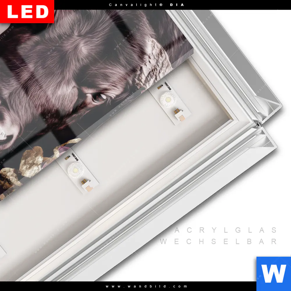 LED-Glasbild mit austauschbarem Acrylglas-Druck (Wechselbild)