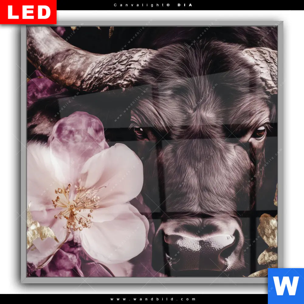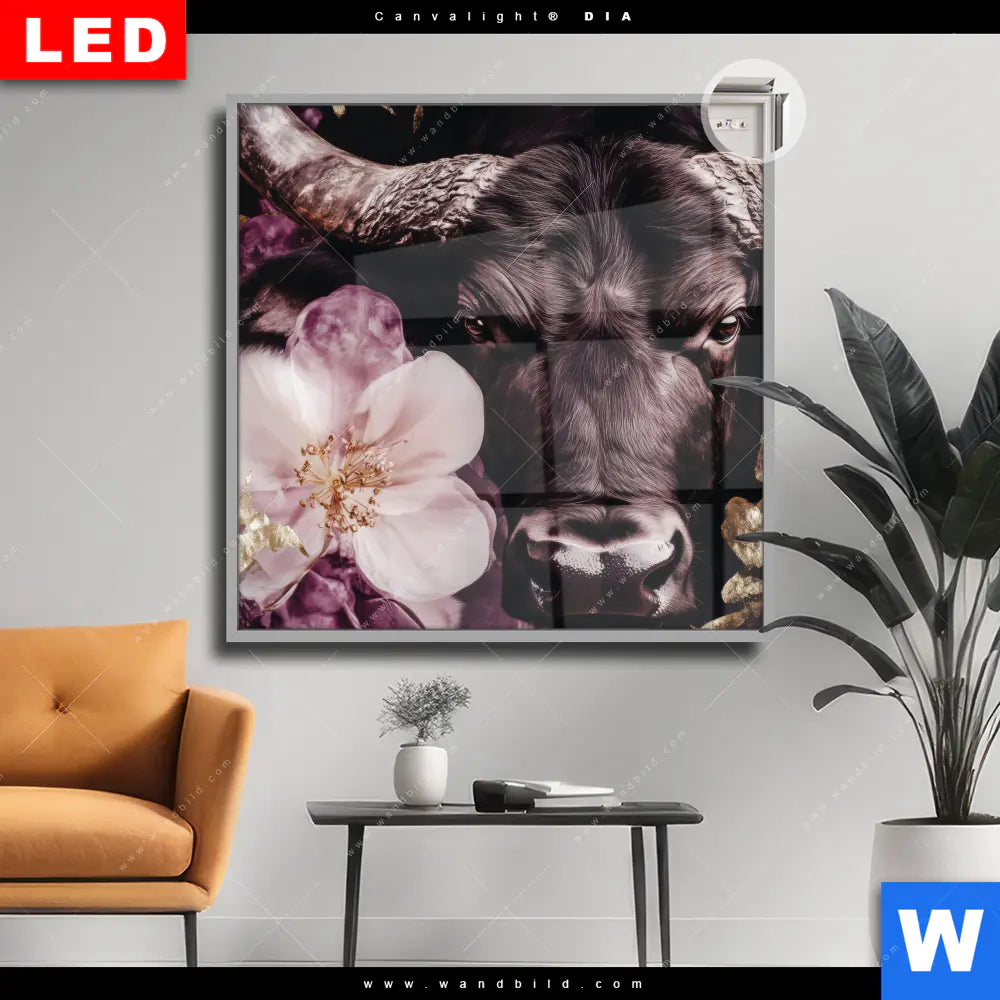 Canvalight® DIA Leuchtbild | Stier mit Blumen | Quadrat