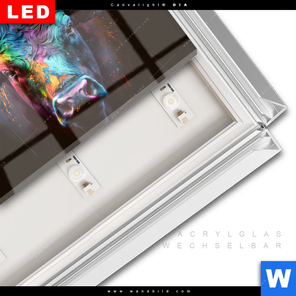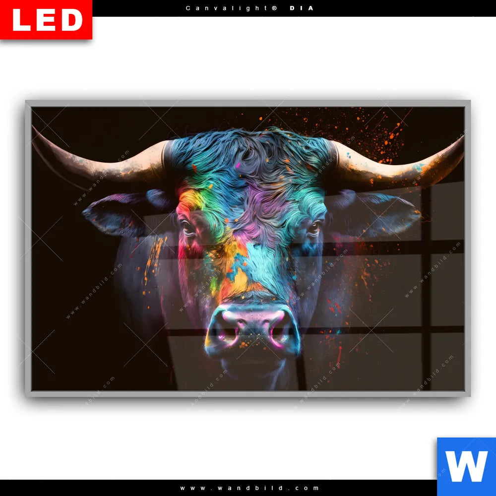 Canvalight® DIA Leuchtbild | Stier mit bunten Farben | Querformat