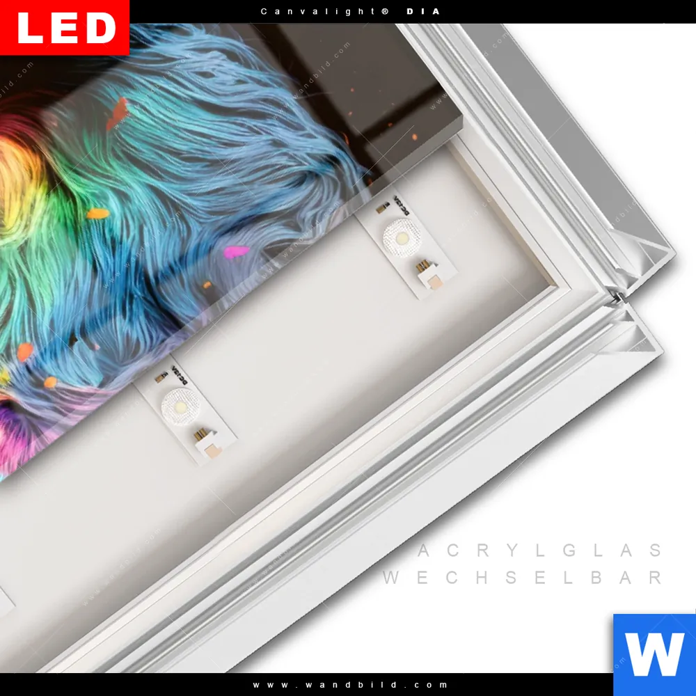LED-Glasbild mit austauschbarem Acrylglas-Druck (Wechselbild)