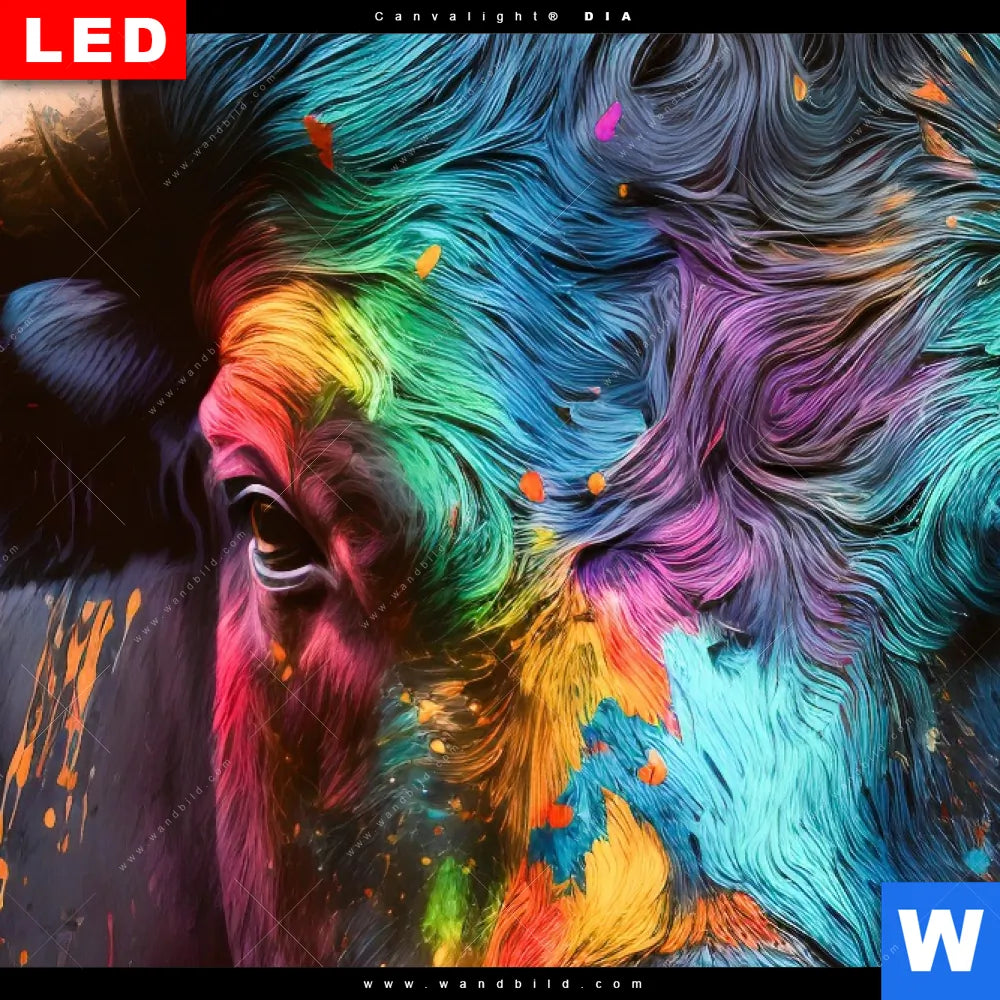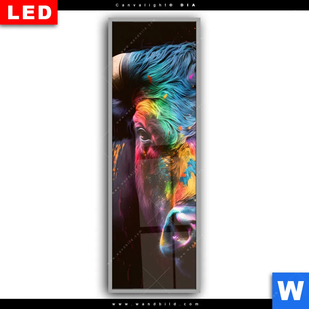 Canvalight® DIA Leuchtbild | Stier mit bunten Farben | Schmal