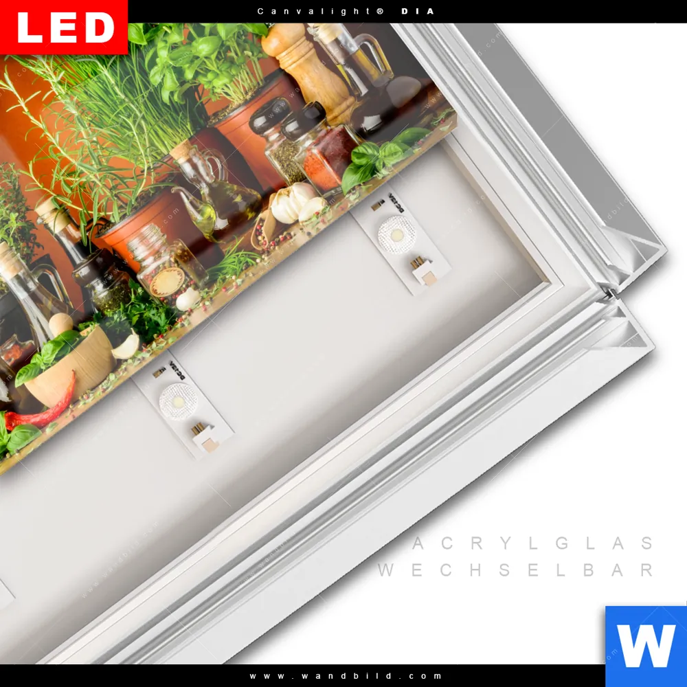 LED-Glasbild mit austauschbarem Acrylglas-Druck (Wechselbild)