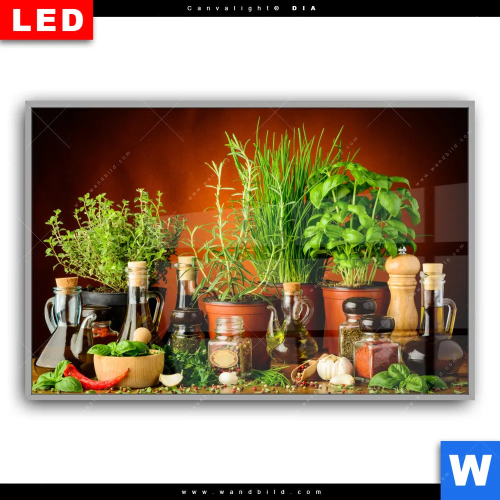 Canvalight® DIA Leuchtbild | Stillleben mit mediterranen Kräutern | Querformat