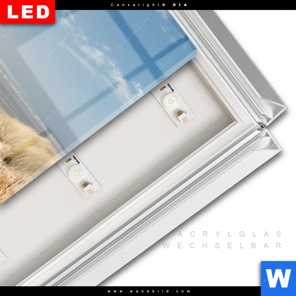 LED-Glasbild mit austauschbarem Acrylglas-Druck (Wechselbild)