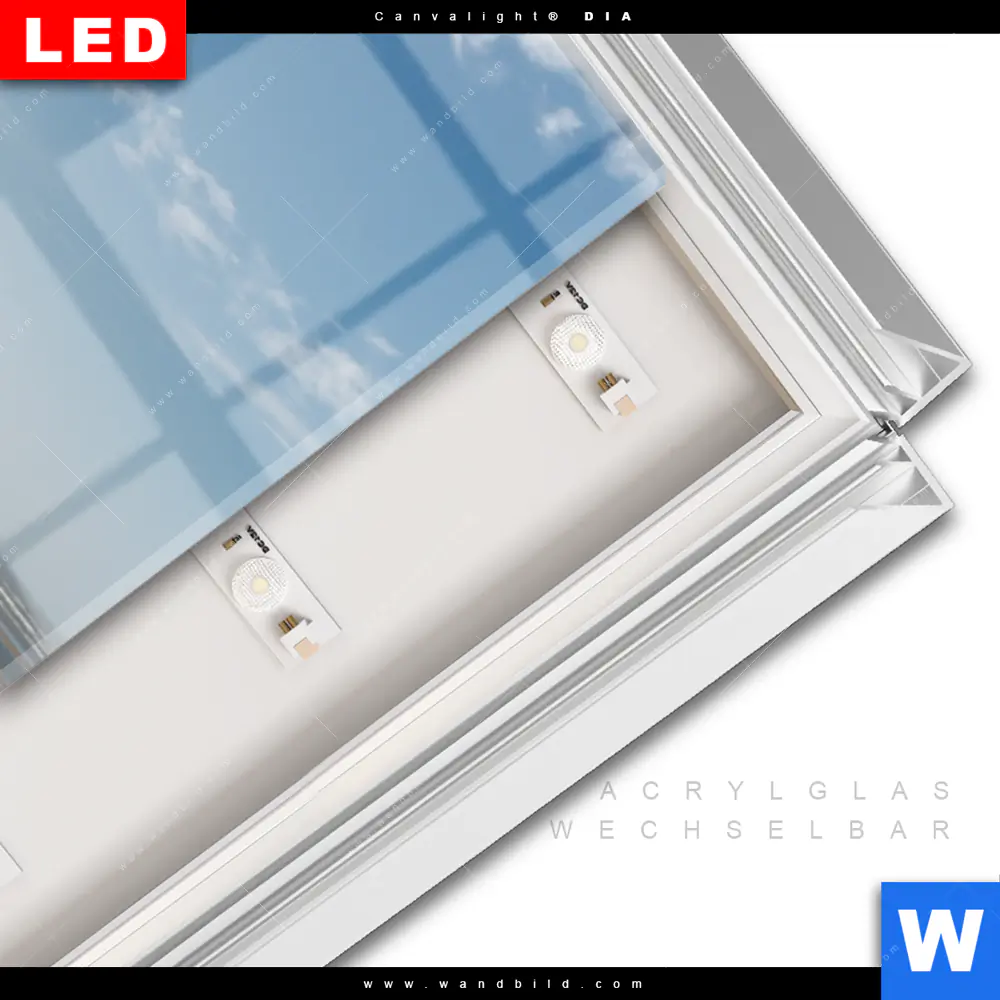 LED-Glasbild mit austauschbarem Acrylglas-Druck (Wechselbild)