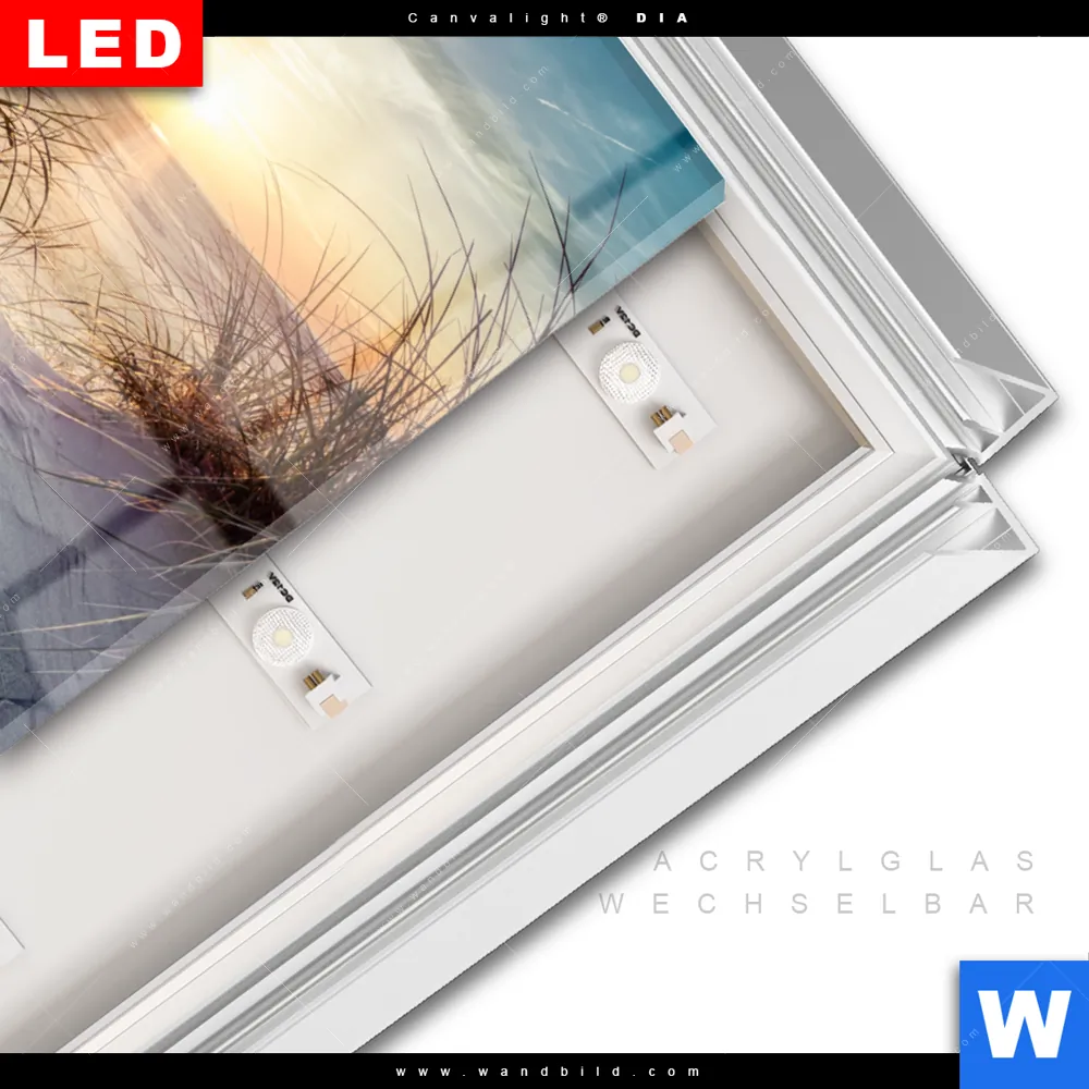LED-Glasbild mit austauschbarem Acrylglas-Druck (Wechselbild)