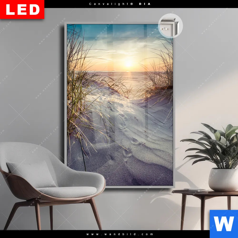 Canvalight® DIA Leuchtbild | Strandlandschaft mit Gras | Hochformat