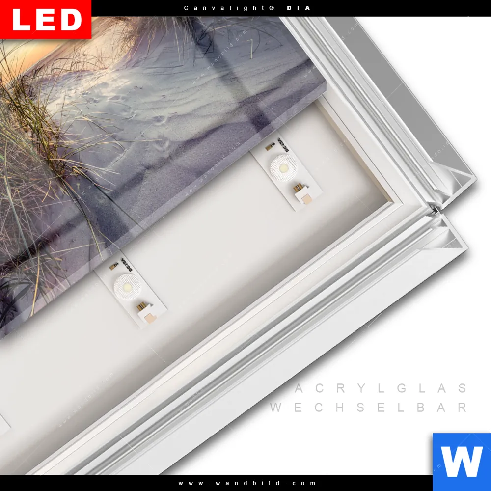 LED-Glasbild mit austauschbarem Acrylglas-Druck (Wechselbild)