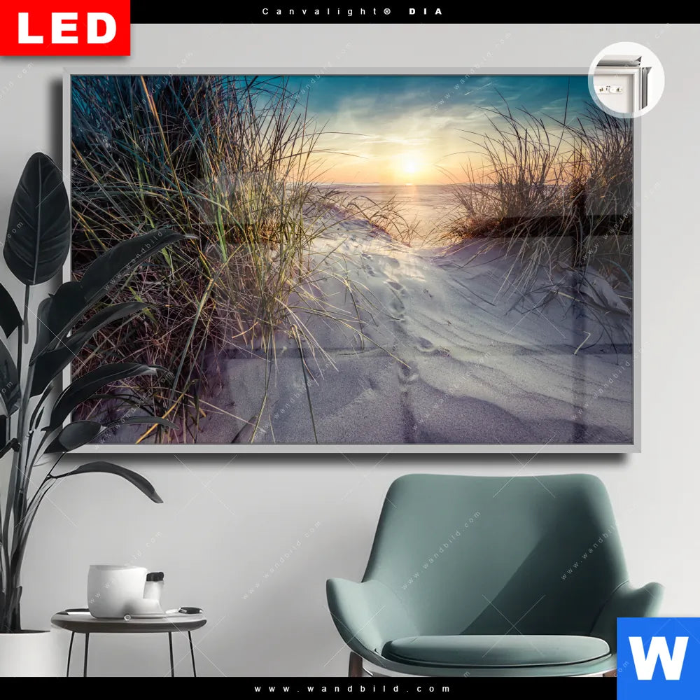 Canvalight® DIA Leuchtbild | Strandlandschaft mit Gras | Querformat