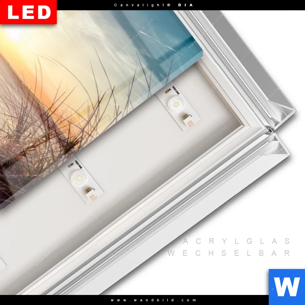 LED-Glasbild mit austauschbarem Acrylglas-Druck (Wechselbild)
