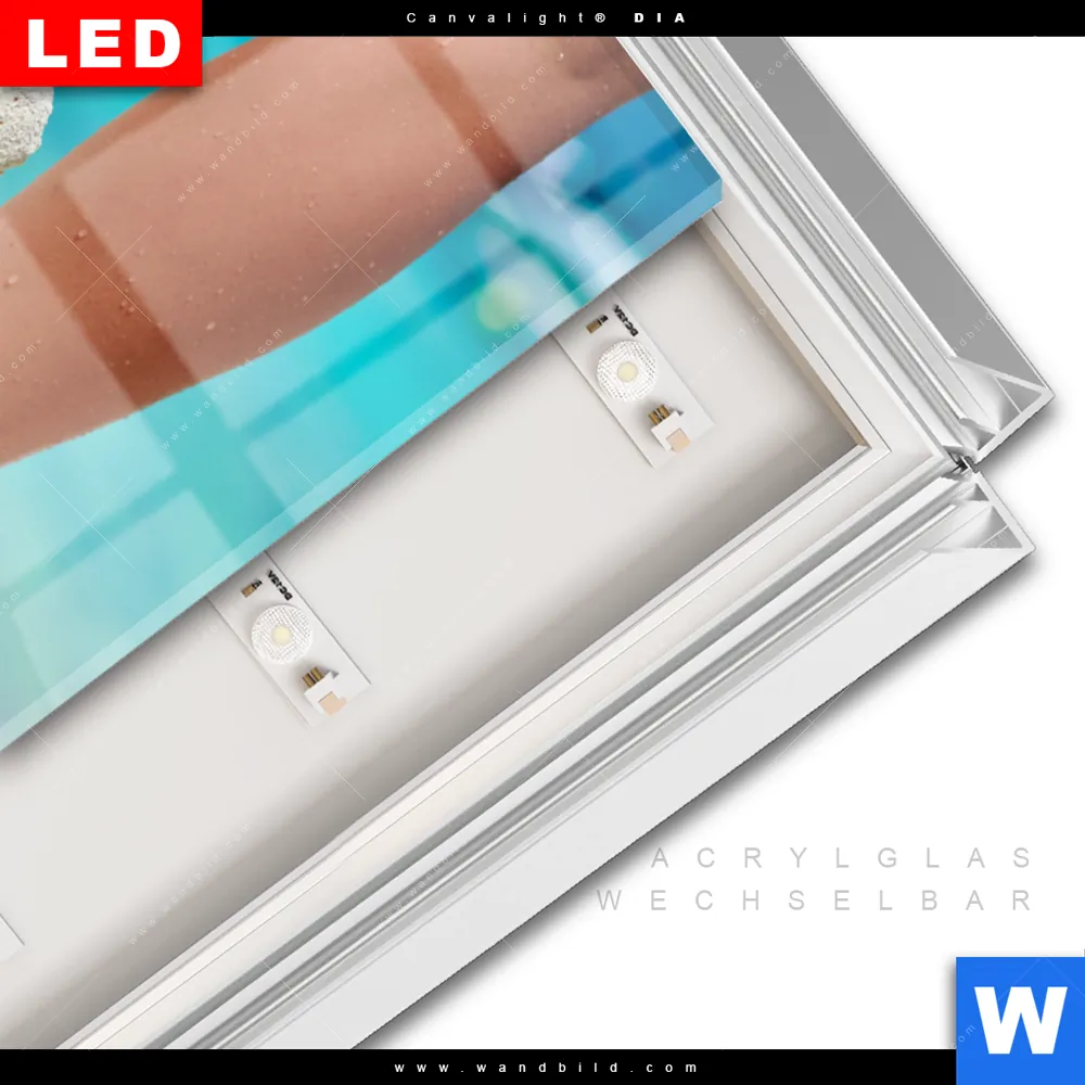 LED-Glasbild mit austauschbarem Acrylglas-Druck (Wechselbild)