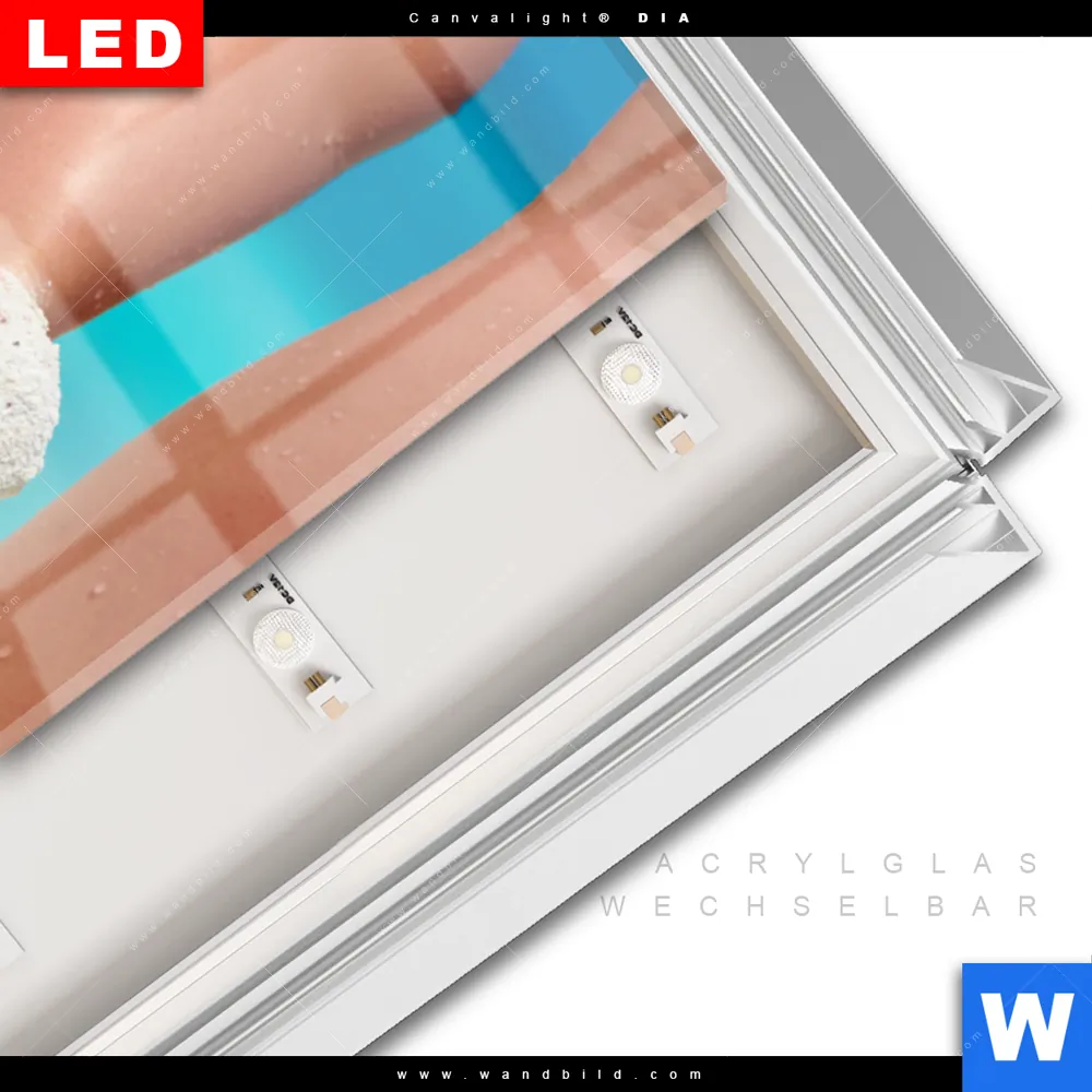 LED-Glasbild mit austauschbarem Acrylglas-Druck (Wechselbild)