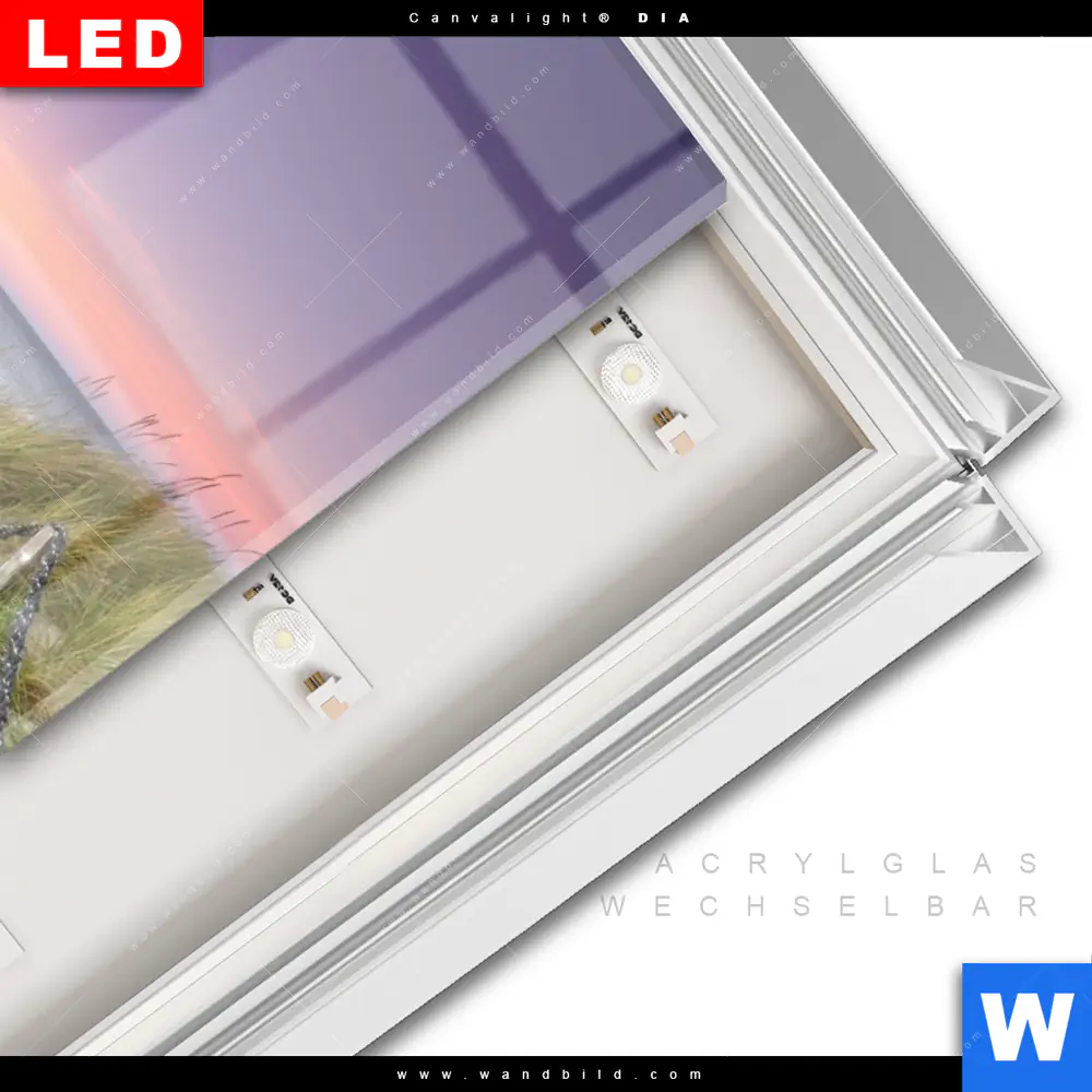 LED-Glasbild mit austauschbarem Acrylglas-Druck (Wechselbild)