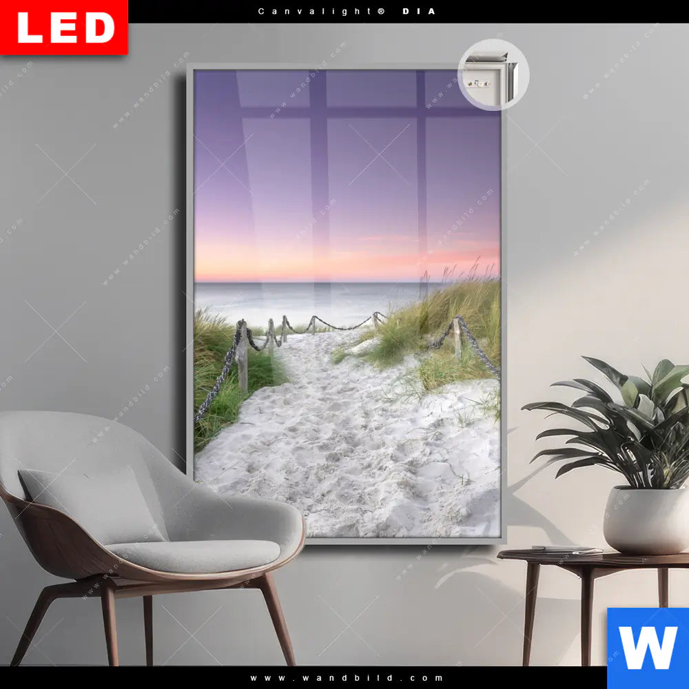 Canvalight® DIA Leuchtbild | Strandweg im Sonnenuntergang | Hochformat