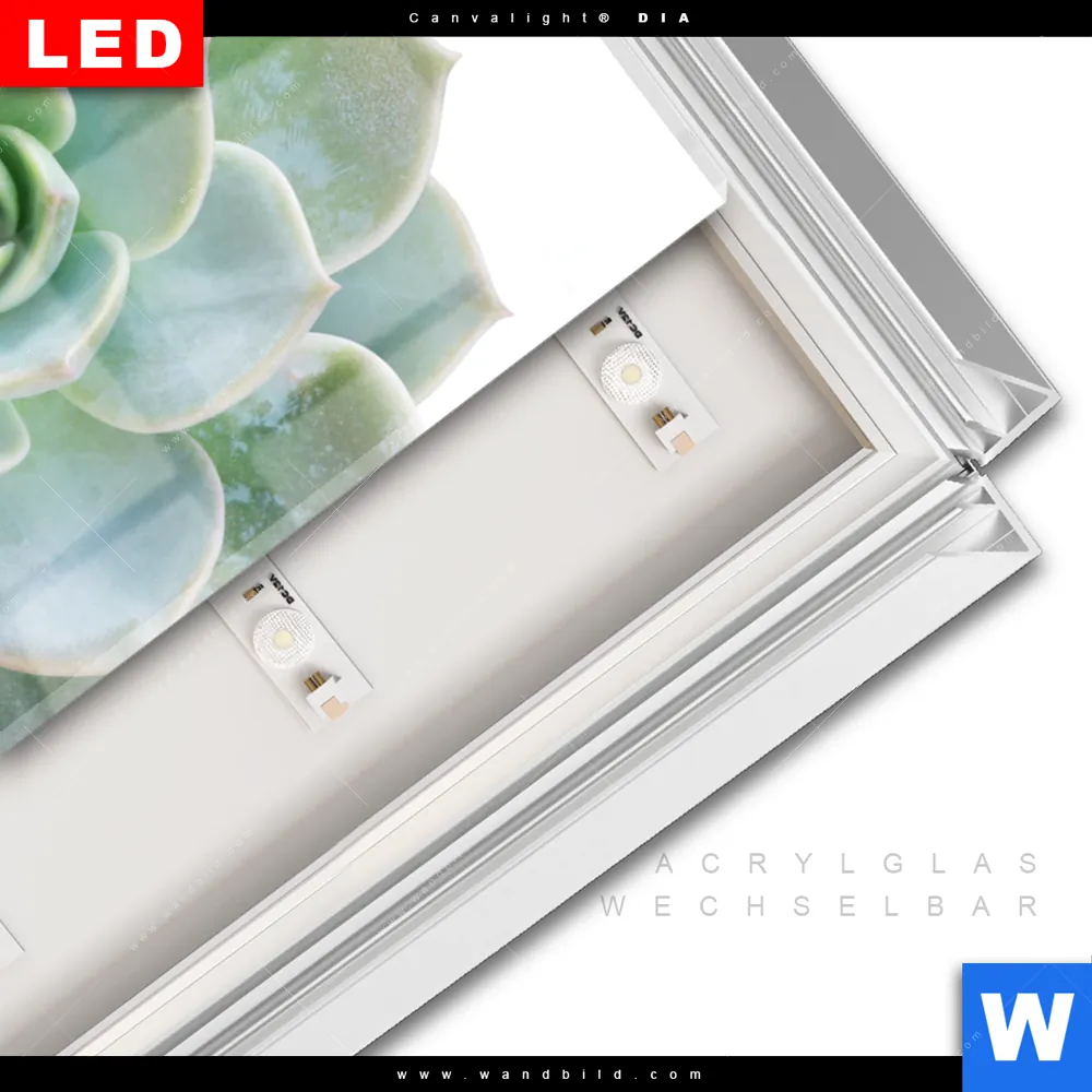 LED-Glasbild mit austauschbarem Acrylglas-Druck (Wechselbild)