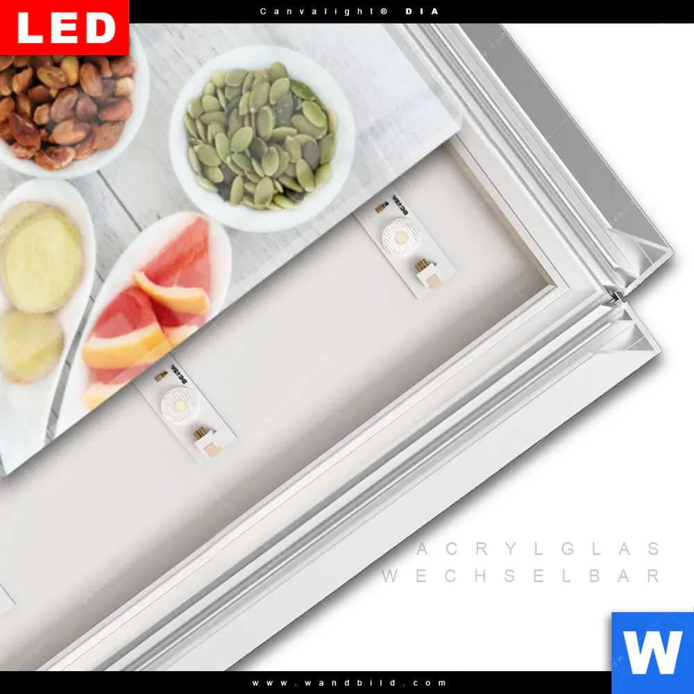 LED-Glasbild mit austauschbarem Acrylglas-Druck (Wechselbild)