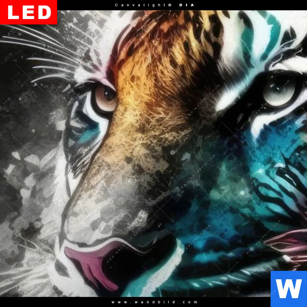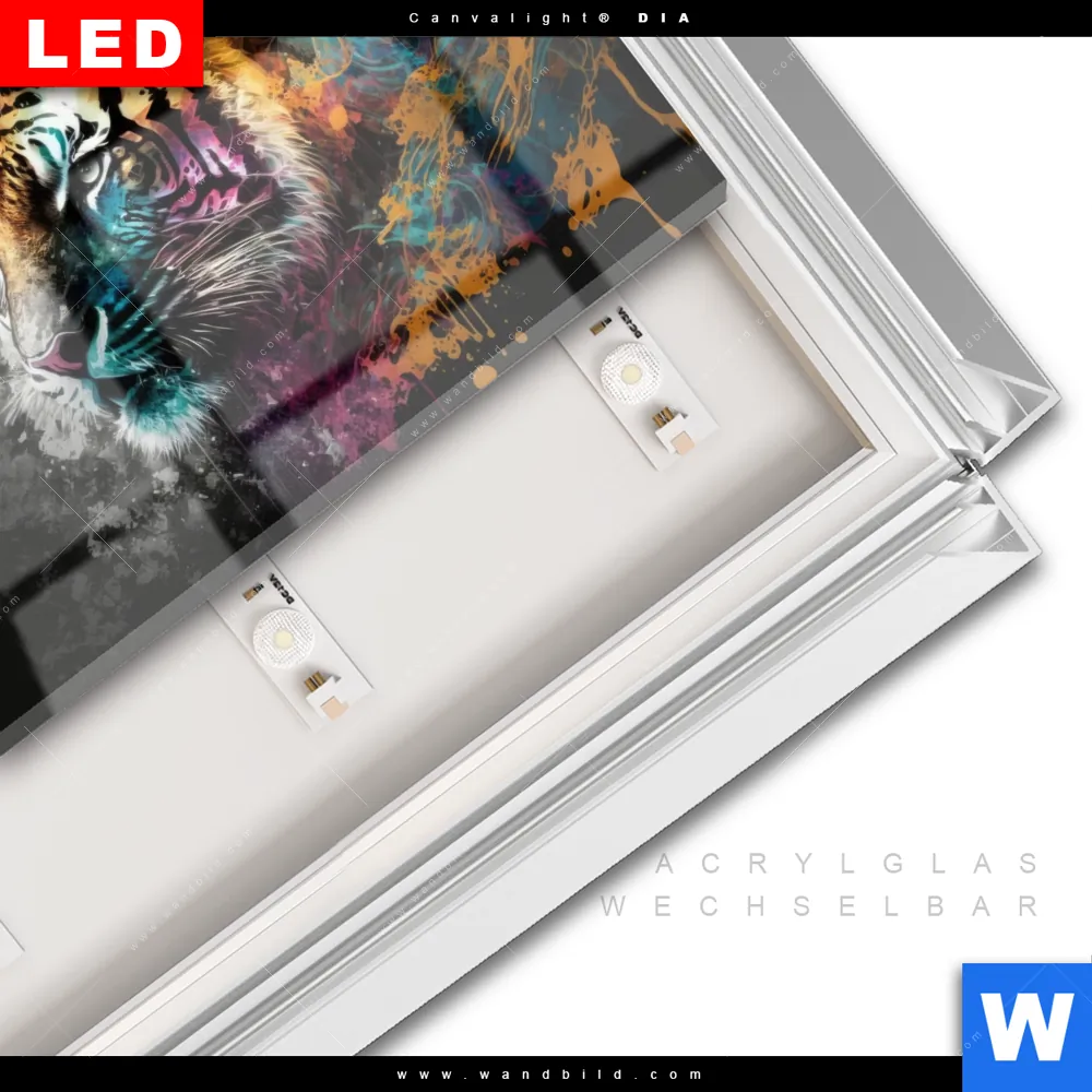 Canvalight® DIA Leuchtbild | Tiger im Farbrausch | Querformat
