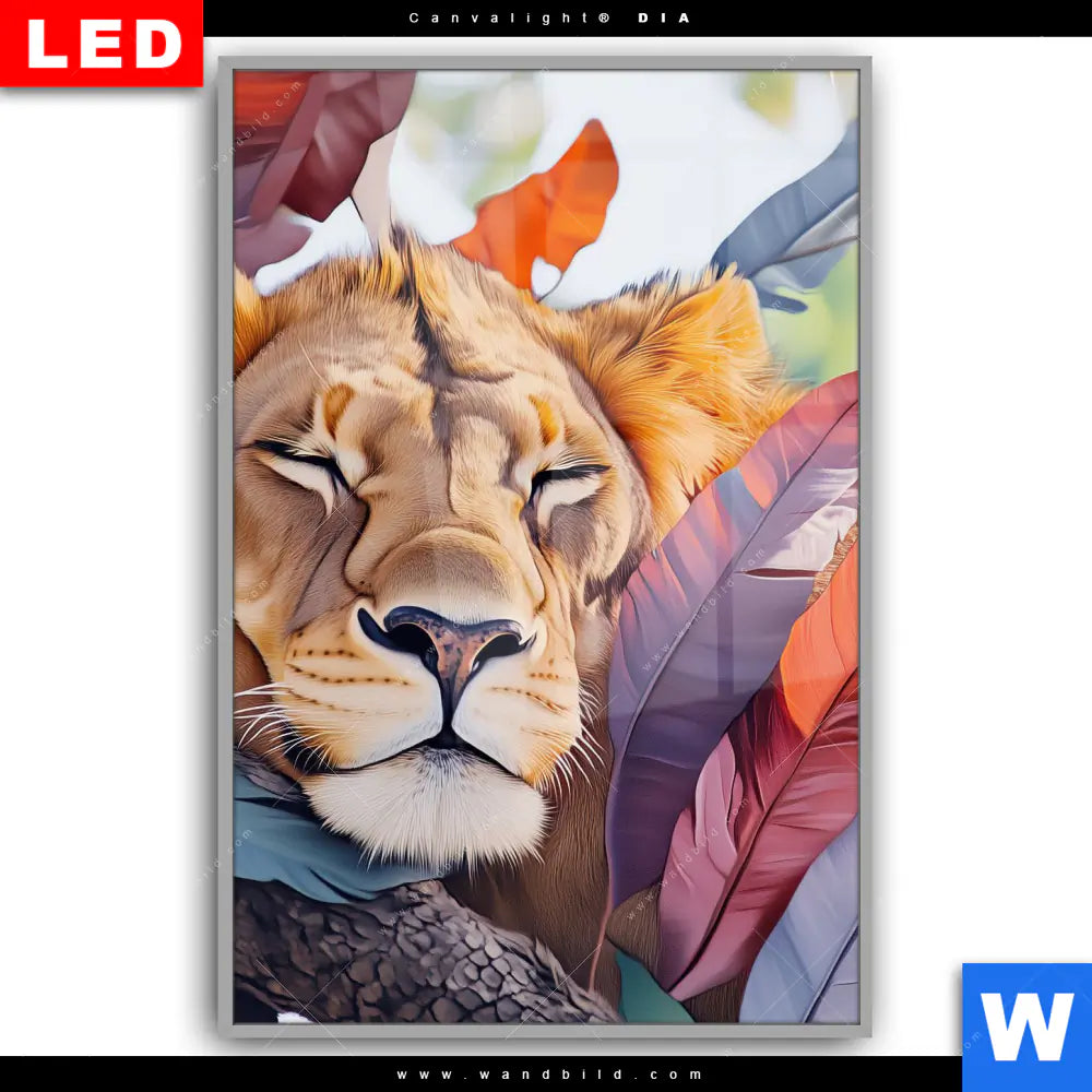 Canvalight® DIA Leuchtbild | Träumender Löwe im Baum | Hochformat