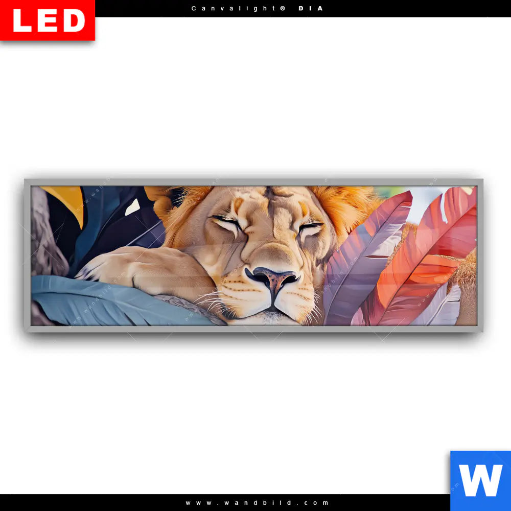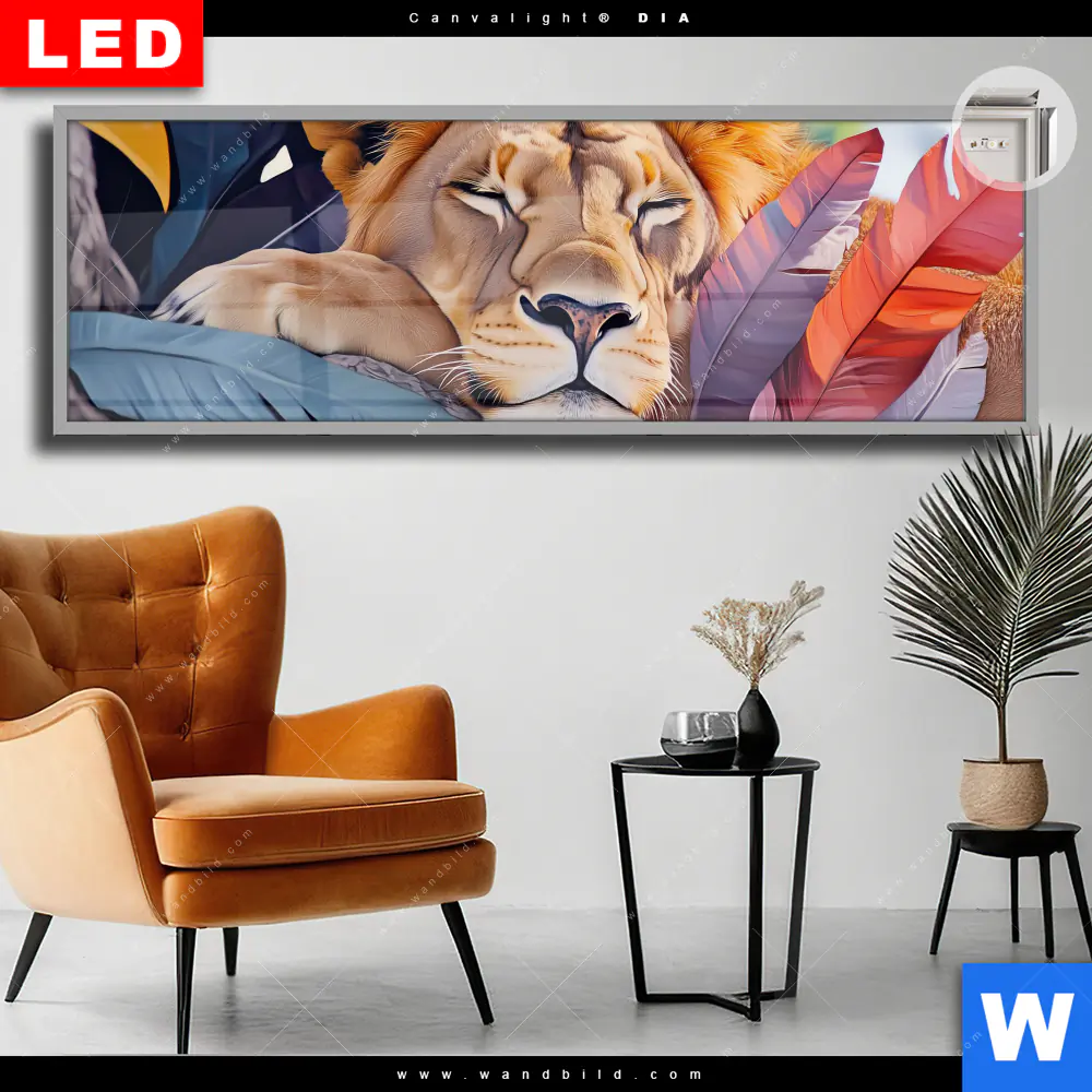 Canvalight® DIA Leuchtbild | Träumender Löwe im Baum | Panorama