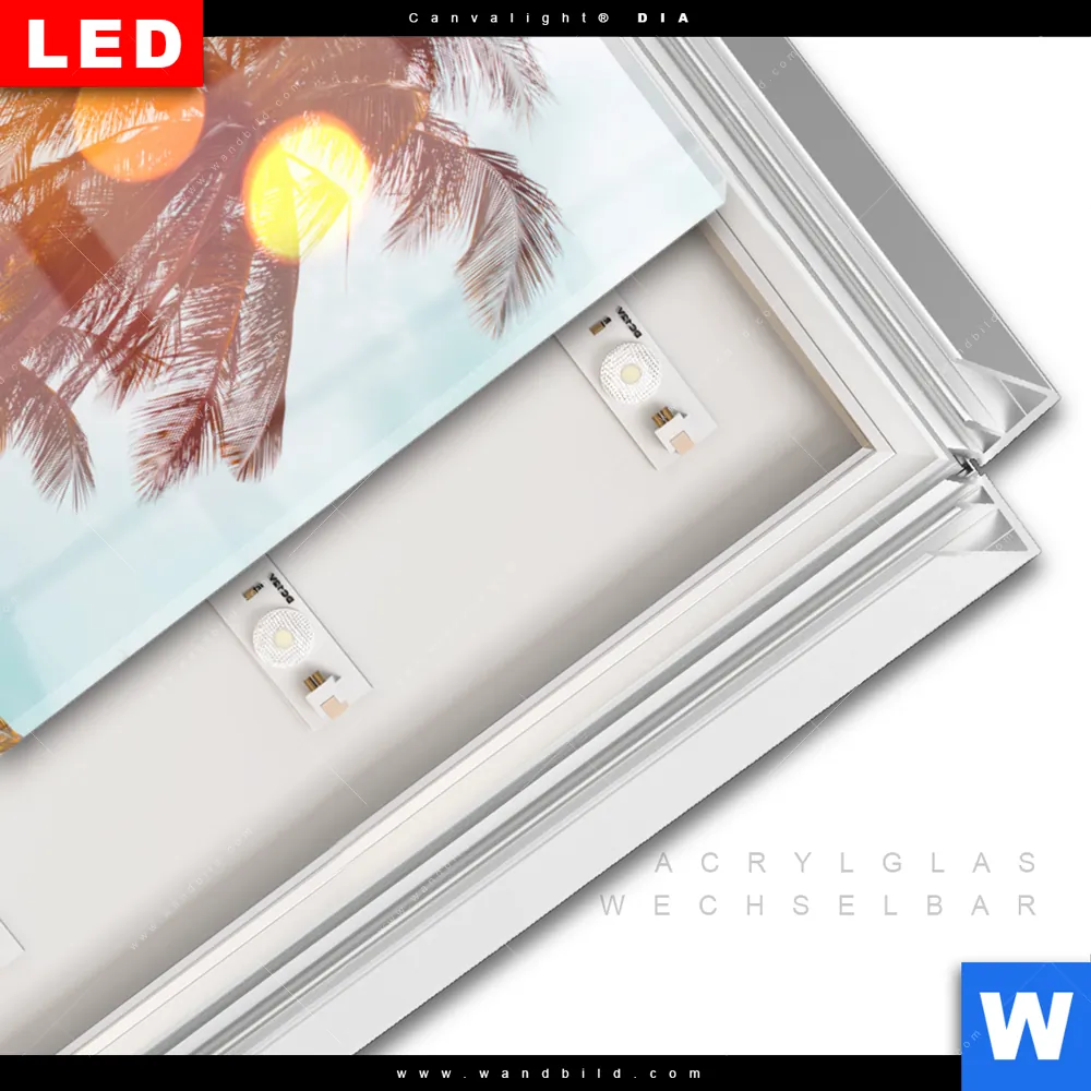 LED-Glasbild mit austauschbarem Acrylglas-Druck (Wechselbild)