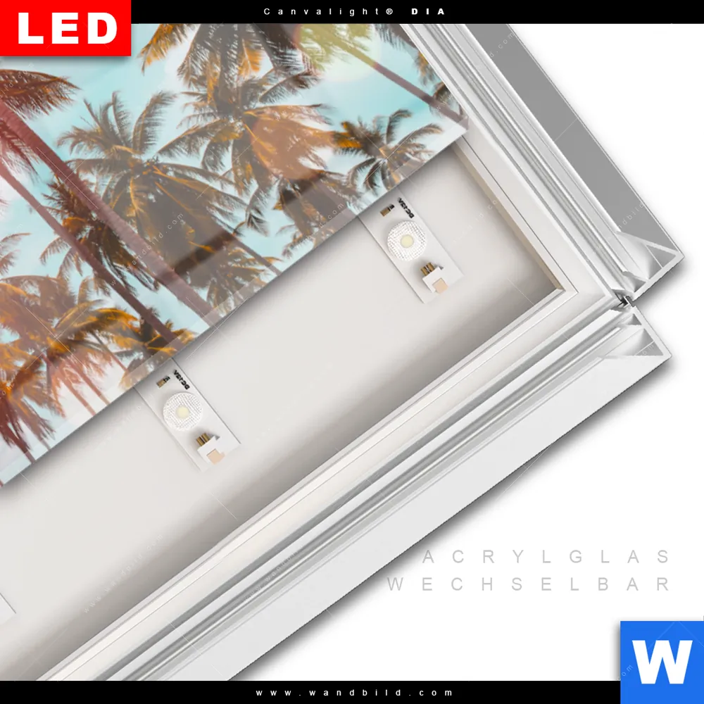 LED-Glasbild mit austauschbarem Acrylglas-Druck (Wechselbild)