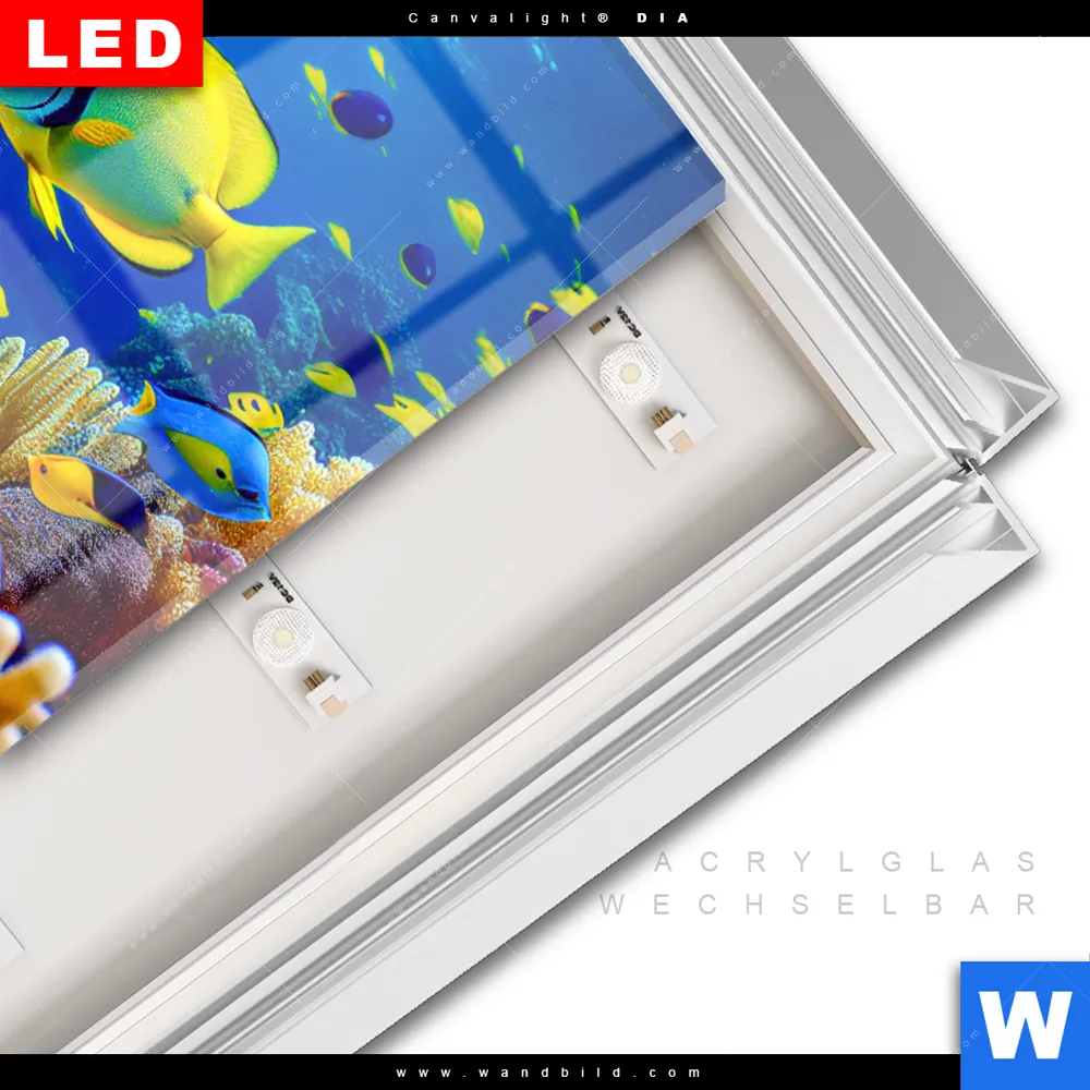 LED-Glasbild mit austauschbarem Acrylglas-Druck (Wechselbild)