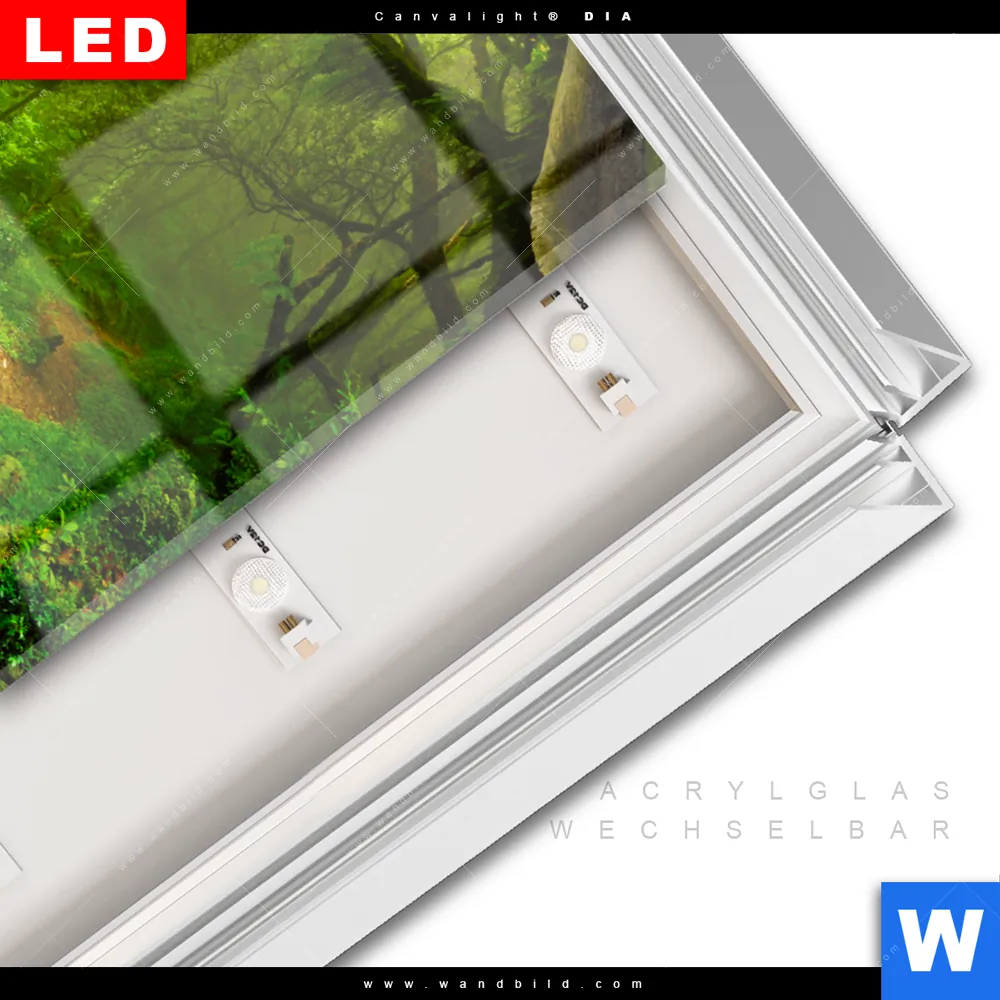 LED-Glasbild mit austauschbarem Acrylglas-Druck (Wechselbild)