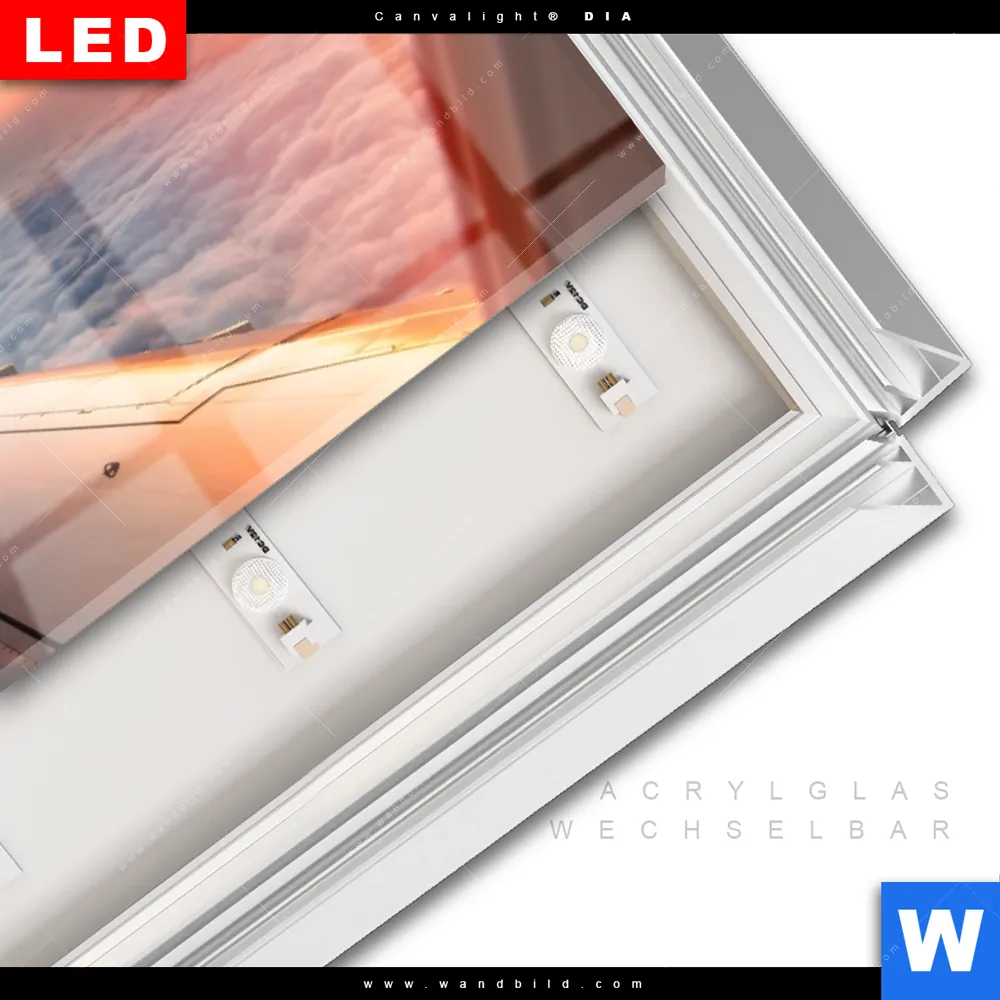 LED-Glasbild mit austauschbarem Acrylglas-Druck (Wechselbild)